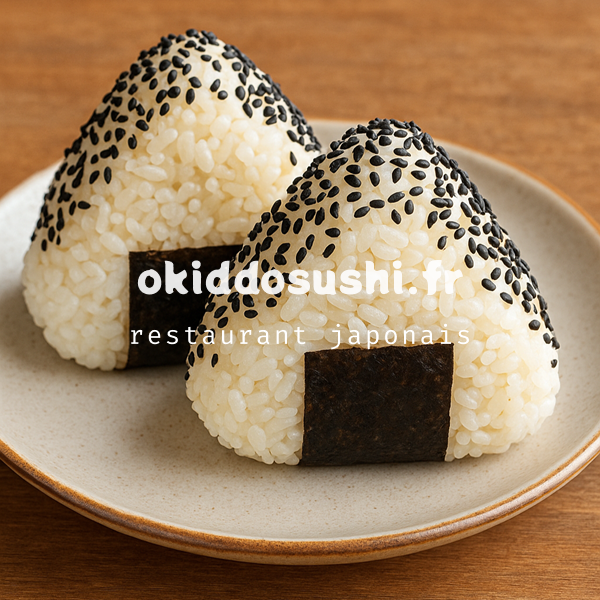 Poignée de riz vinaigré entourée d'une fine feuille d'algue et garnie de gros oeufs de saumon. Prix par paire